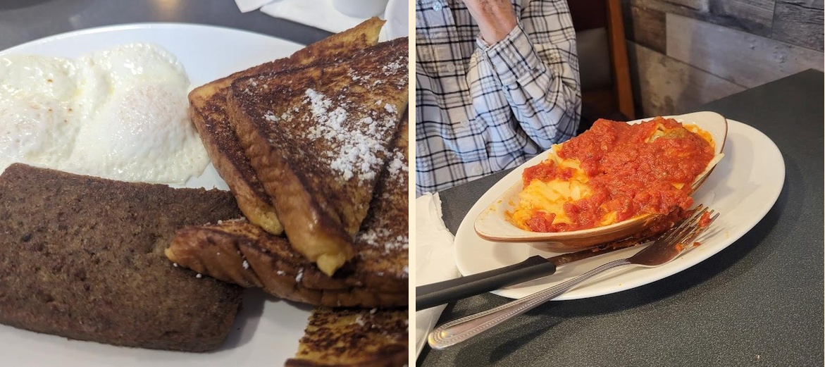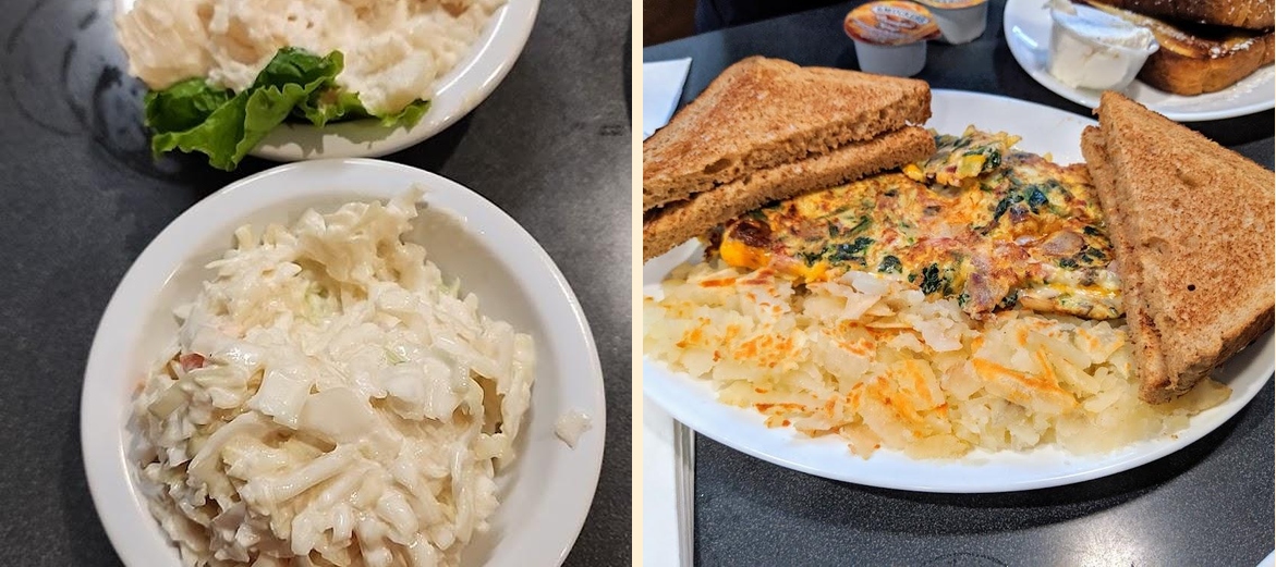 Try the Eggs with Choice of Meat, or the famous French Toast. Don't miss the Homestyle Gravies as well. For dessert, their cakes and pies are exceptional. The coffee really enhances your meal.